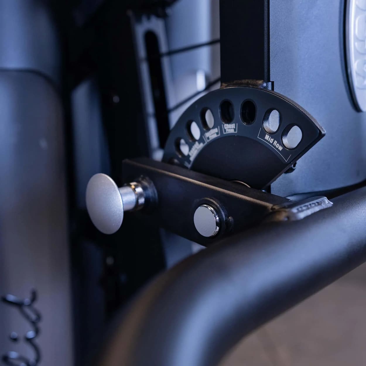 Station Brustpresse / Mittlere Reihe: Der Multi-Grip-Pressarm verfügt über 3 Griffmöglichkeiten, um die Muskelgruppen aus verschiedenen Winkeln zu trainieren, was eine gründlichere Muskelentwicklung ermöglicht. Stellen Sie die Verstellung an der Oberseite des Pressarms ein, um fehlerfreie Brust-, Schulter- und Rückenübungen durchzuführen. Drehen Sie sich um und beanspruchen Sie Ihre Lats mit einer brustgestützten mittleren Ruderübung oder greifen Sie nach oben und nutzen Sie die Latzugstange.